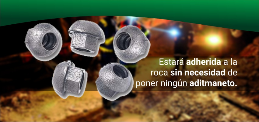 Permite que la Placa de Sujeción permanezca siempre adherida a la masa rocosa debido a la forma esférica de la tuerca , lo que genera un efecto de rótula.De esta forma, la Placa estará adherida a la roca sin necesidad de poner ningún aditmaneto,como bases de concreto,etc.